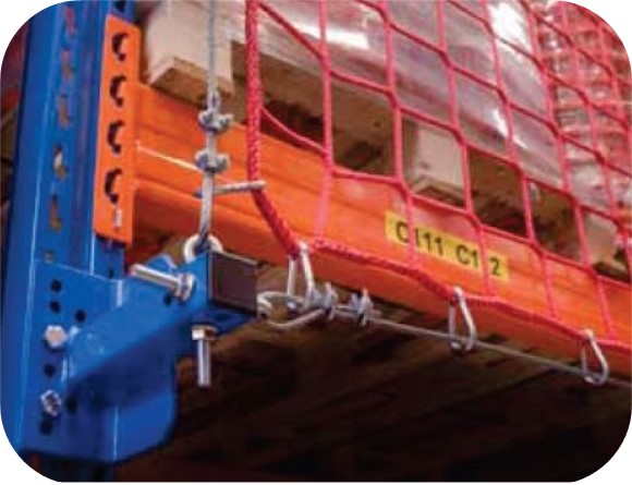 Filets de protection en polypropylène haute résistance pour protéger contre la chute des marchandises stockées en hauteur. Tous les filets sont munis d’une lisière renforcée sur le pourtour.