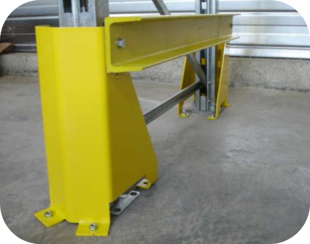 Nous proposons des protections latérales d’échelle en rive pour préserver les montants et diagonales d’échelle des éventuels chocs occasionnés par les chariots élévateurs lors des manœuvres (se référer à la norme ED 771 de l’INRS). Chaque protection est constituée de 2 sabots de protection tôlé H400 mm + 1 rail UPN 100.