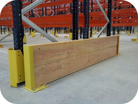 Nous proposons des protections latérales d’échelle en rive pour préserver les montants et diagonales d’échelle des éventuels chocs occasionnés par les chariots élévateurs lors des manœuvres (se référer à la norme ED 771 de l’INRS). Chaque protection est constituée de 2 potelets UPN H 450 mm + 2 bastaings bois, H 225 mm x P 75 mm.